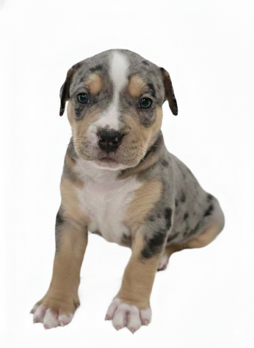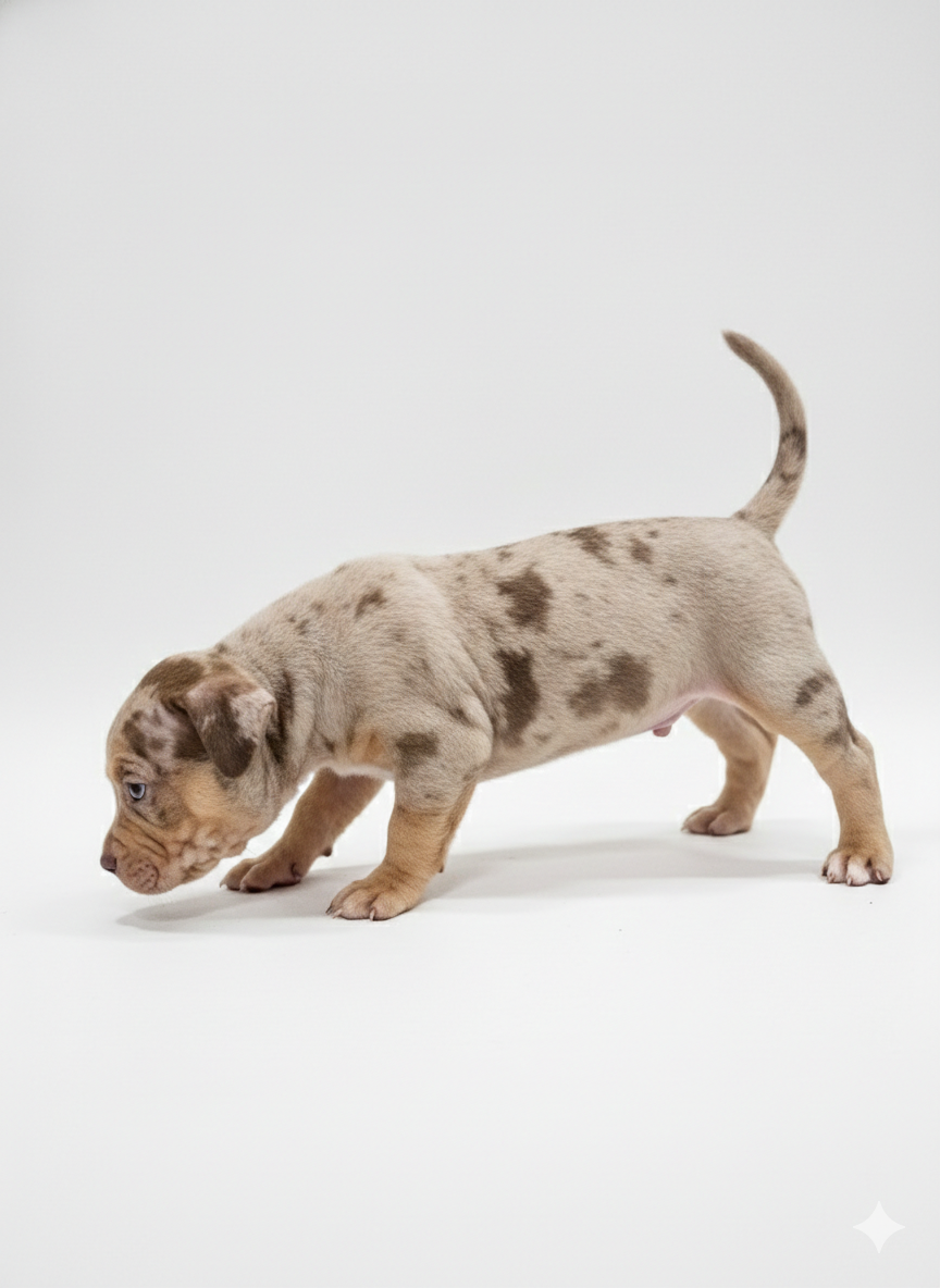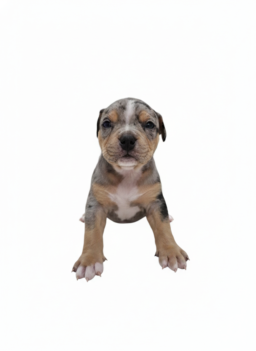 Chocolate Tri Merle male • DOB 12/23/25 • Go-home 02/10