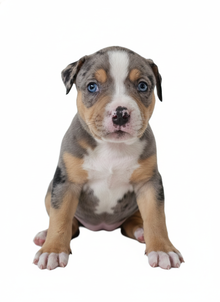 Tri Blue Merle male • DOB 12/23/25 • Go-home 02/10